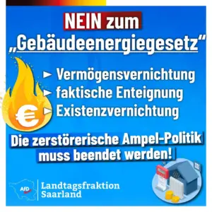 Allmählich wird es gewiss. Die Ampel-Politik führt uns in den Ruin. Mit dem bevorstehenden Gebäudeenergiegesetz oder auch Vermögensvernichtungsgesetz erschafft die Ampel ein Existenzrisiko für jeden Bürger in nie dagewesener Höhe. Insbesondere im Saarland und in der Landeshauptstadt Saarbrücken werden die Auswirkungen der Ampelpläne wegen des überalterten Immobilienbestandes, der hohen Eigenheimquote und des geringeren Einkommens innerhalb Deutschlands zu dramatischen sozialen Verwerfungen kommen.